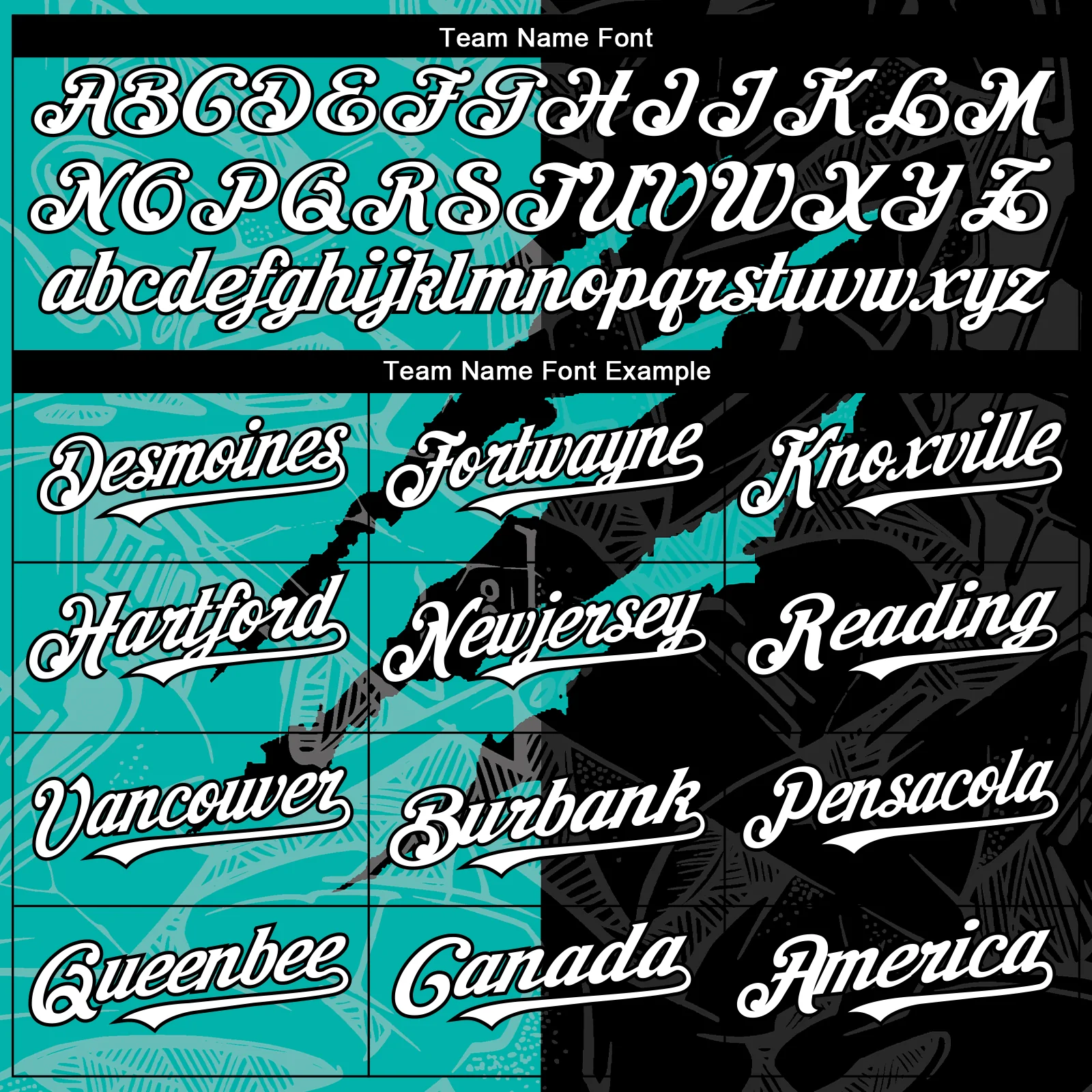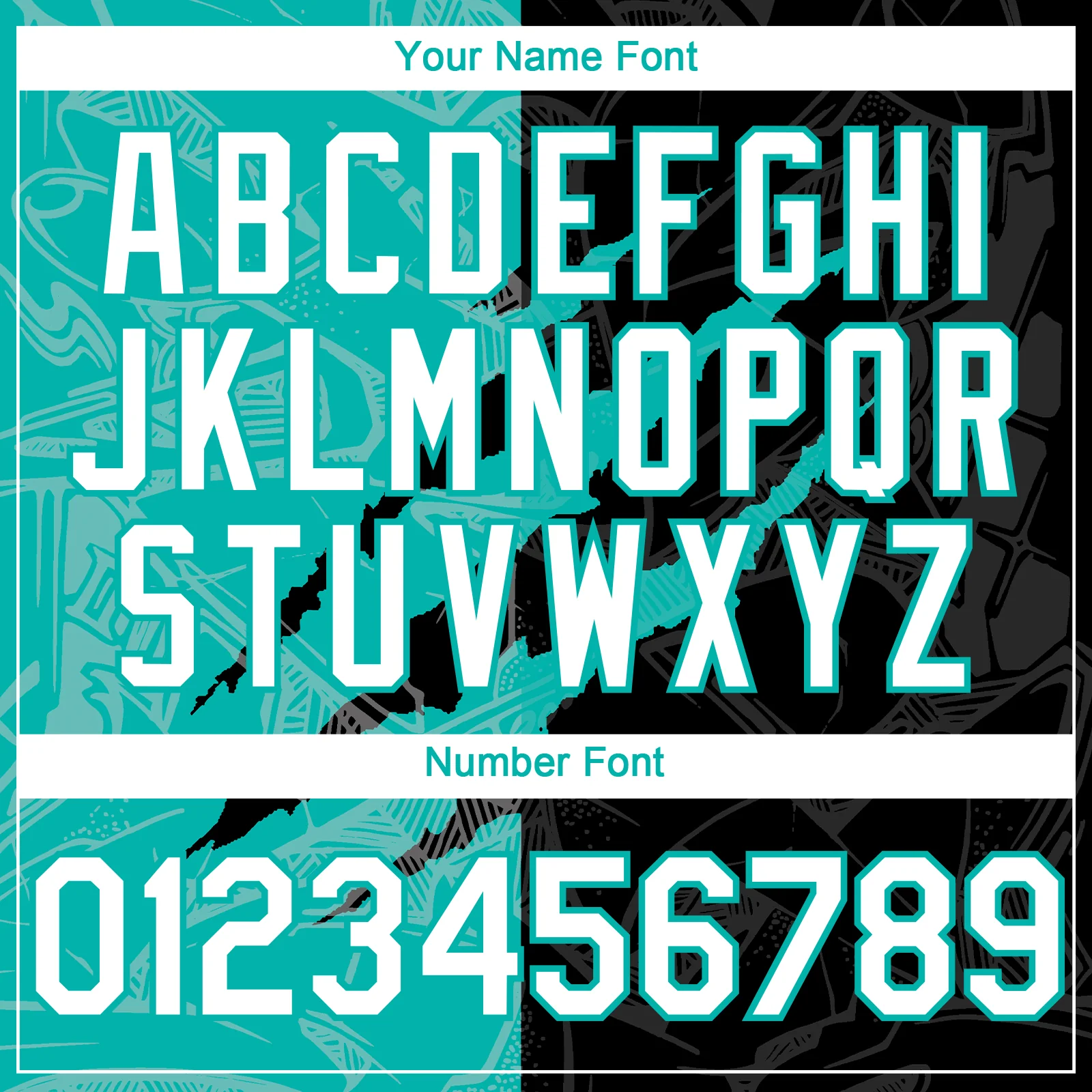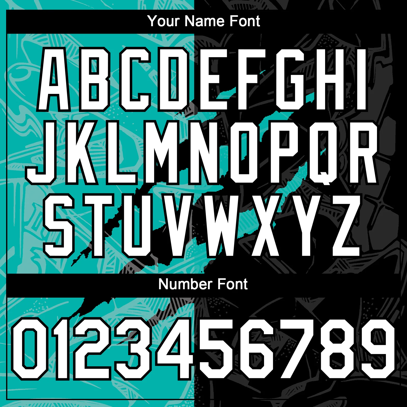 Custom Graffiti Pattern White Black-Aqua 3D Scratch Authentic Baseball Jersey