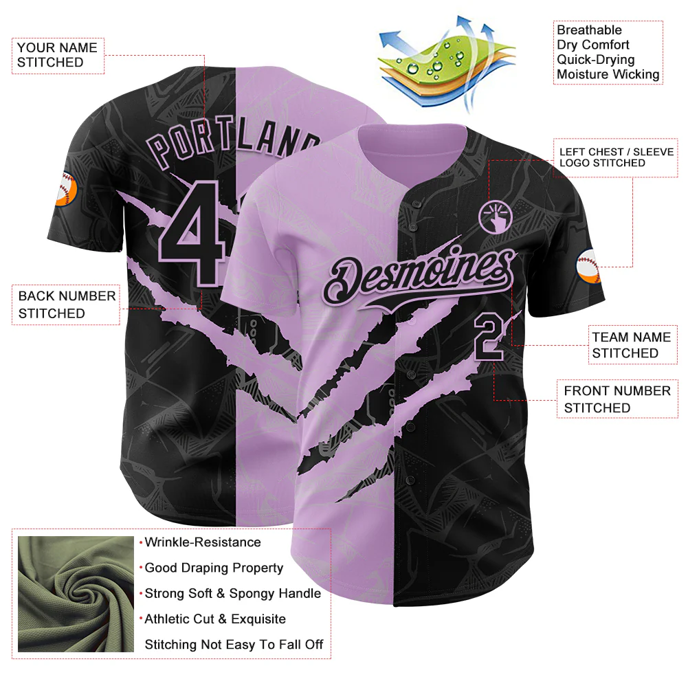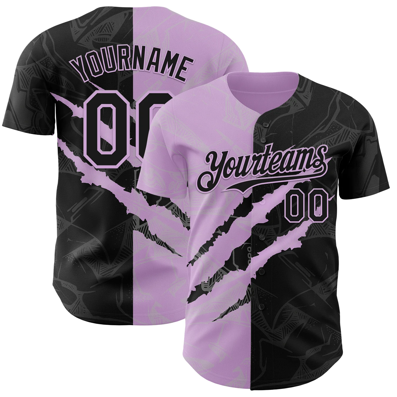 Custom Graffiti Pattern Black-Light Purple 3D Scratch Authentic Baseball Jersey