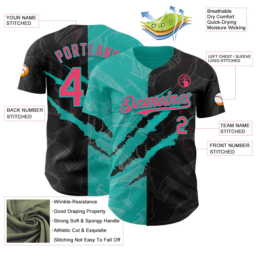 Custom Graffiti Pattern Neon Pink Black-Aqua 3D Scratch Authentic Baseball Jersey