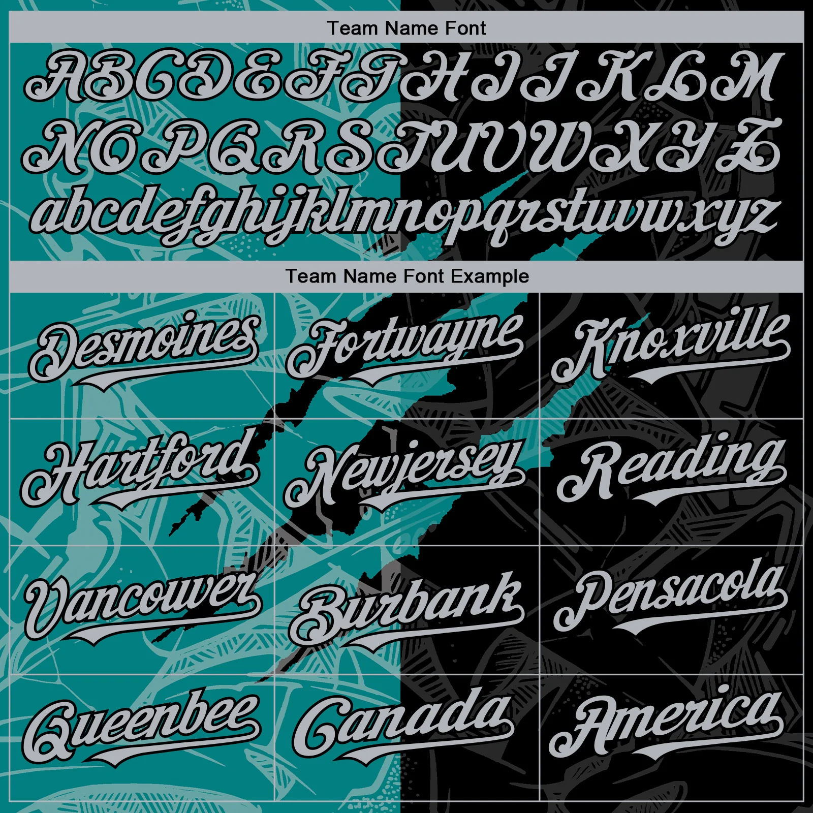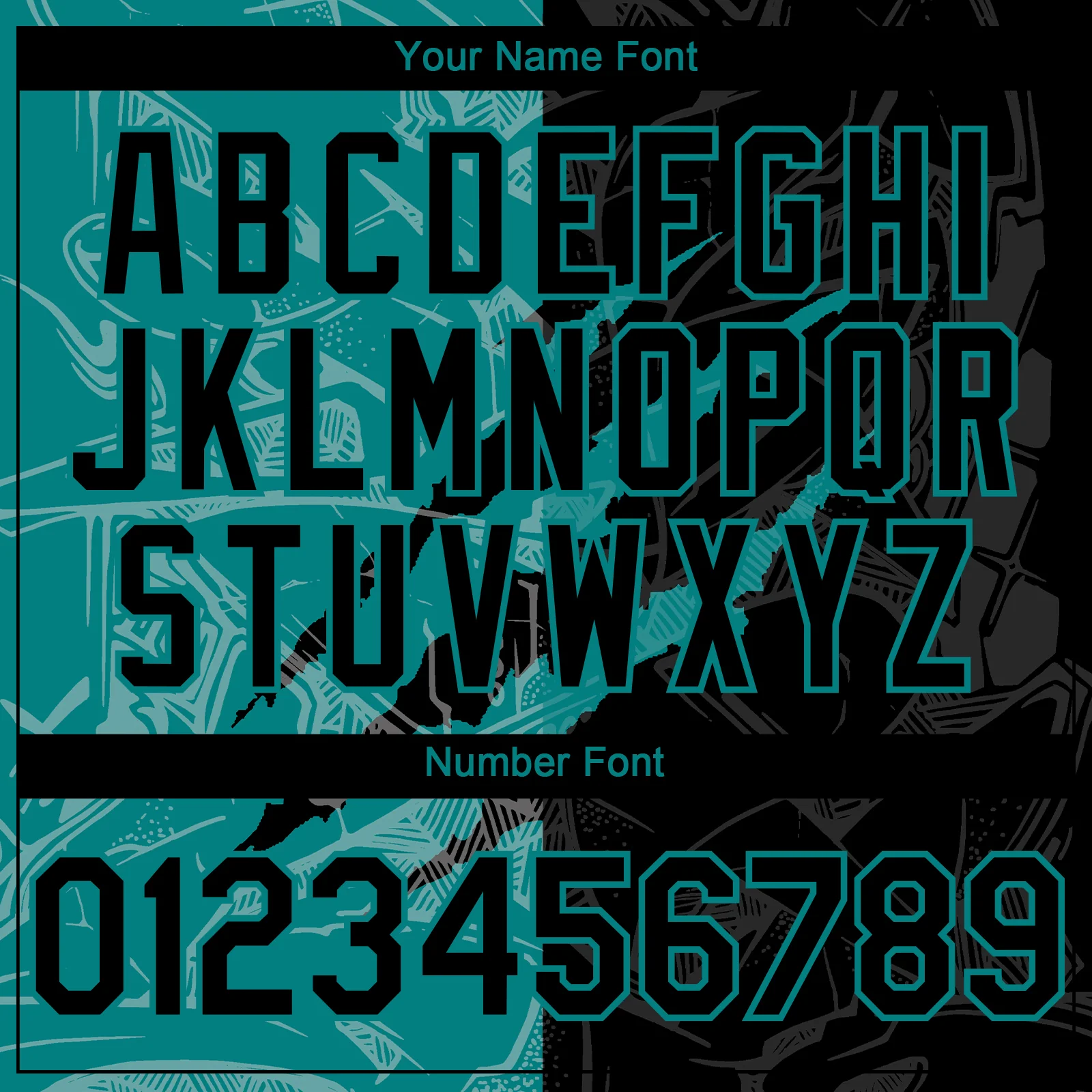 Custom Graffiti Pattern Black-Teal 3D Scratch Authentic Baseball Jersey