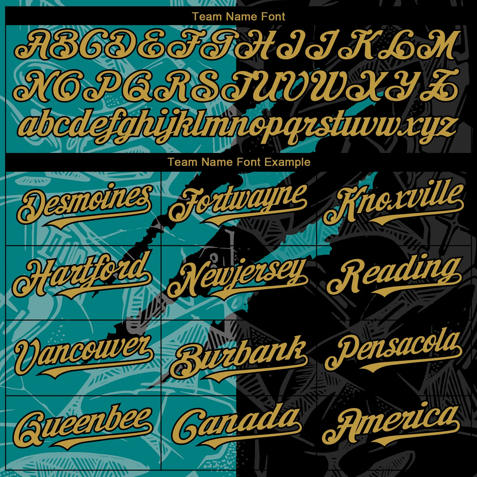 Custom Graffiti Pattern Old Gold Black-Teal 3D Scratch Authentic Baseball Jersey