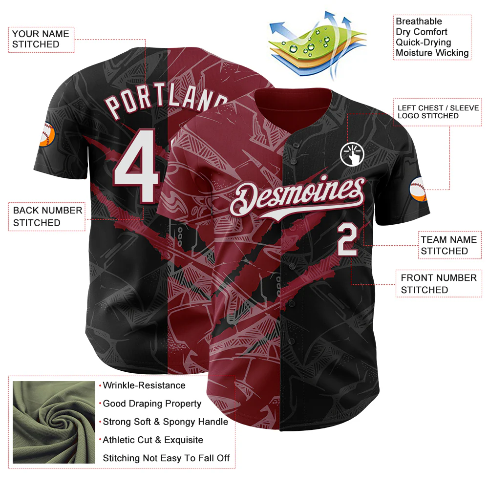 Custom Graffiti Pattern Crimson Black-Cream 3D Scratch Authentic Baseball Jersey