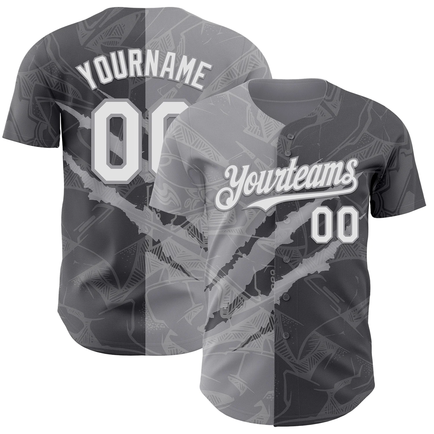 Custom Graffiti Pattern White Steel Gray-Gray 3D Scratch Authentic Baseball Jersey