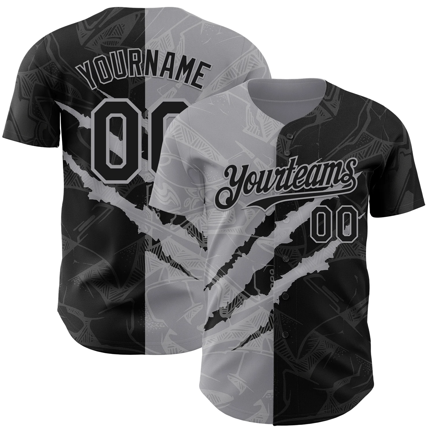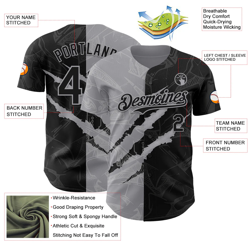 Custom Graffiti Pattern Black-Gray 3D Scratch Authentic Baseball Jersey