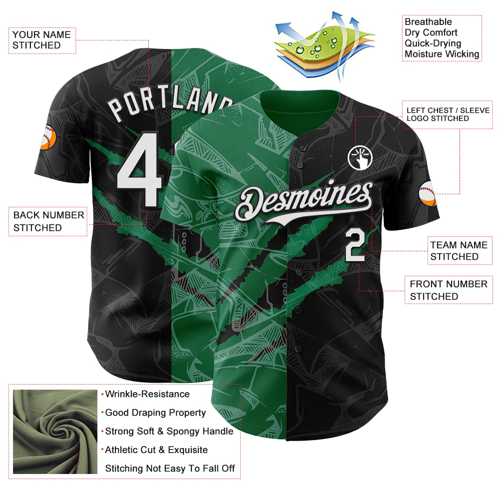 Custom Graffiti Pattern White Black-Kelly Green 3D Scratch Authentic Baseball Jersey