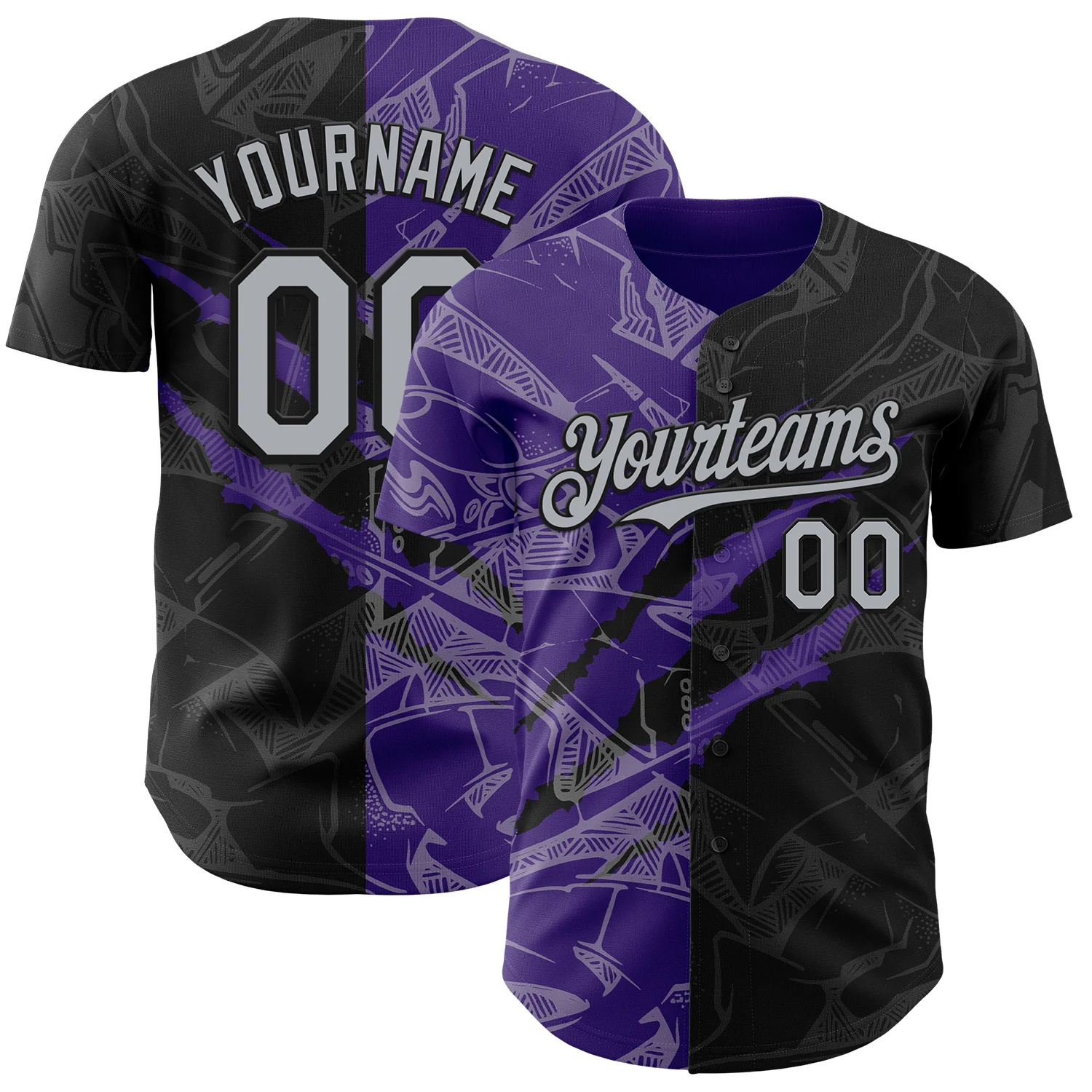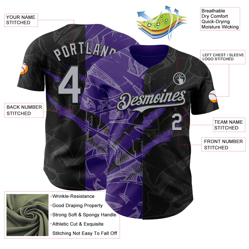 Custom Graffiti Pattern Gray Black-Purple 3D Scratch Authentic Baseball Jersey