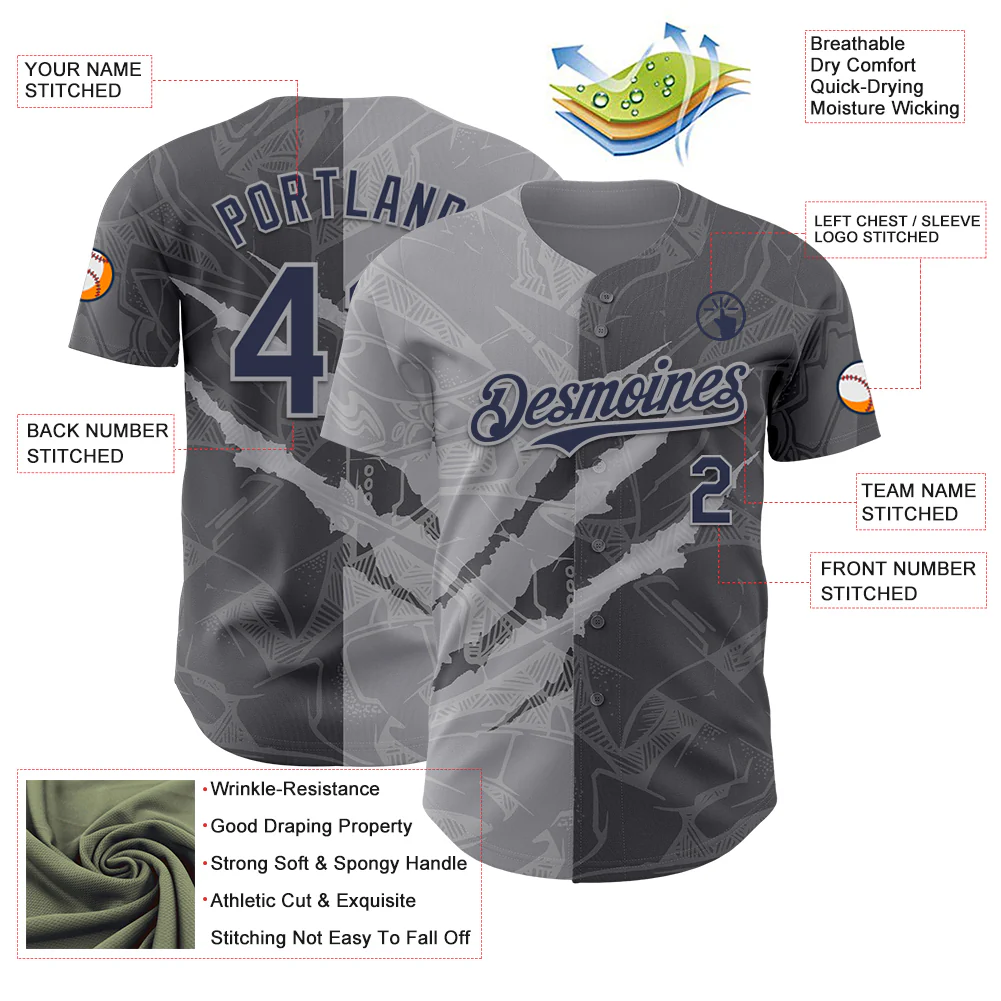 Custom Graffiti Pattern Navy Steel Gray-Gray 3D Scratch Authentic Baseball Jersey