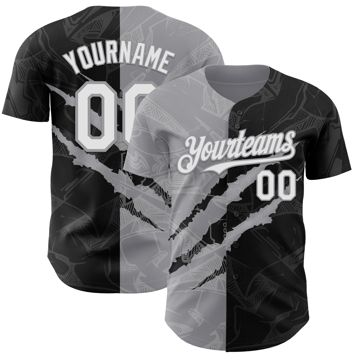 Custom Graffiti Pattern White Black-Gray 3D Scratch Authentic Baseball Jersey