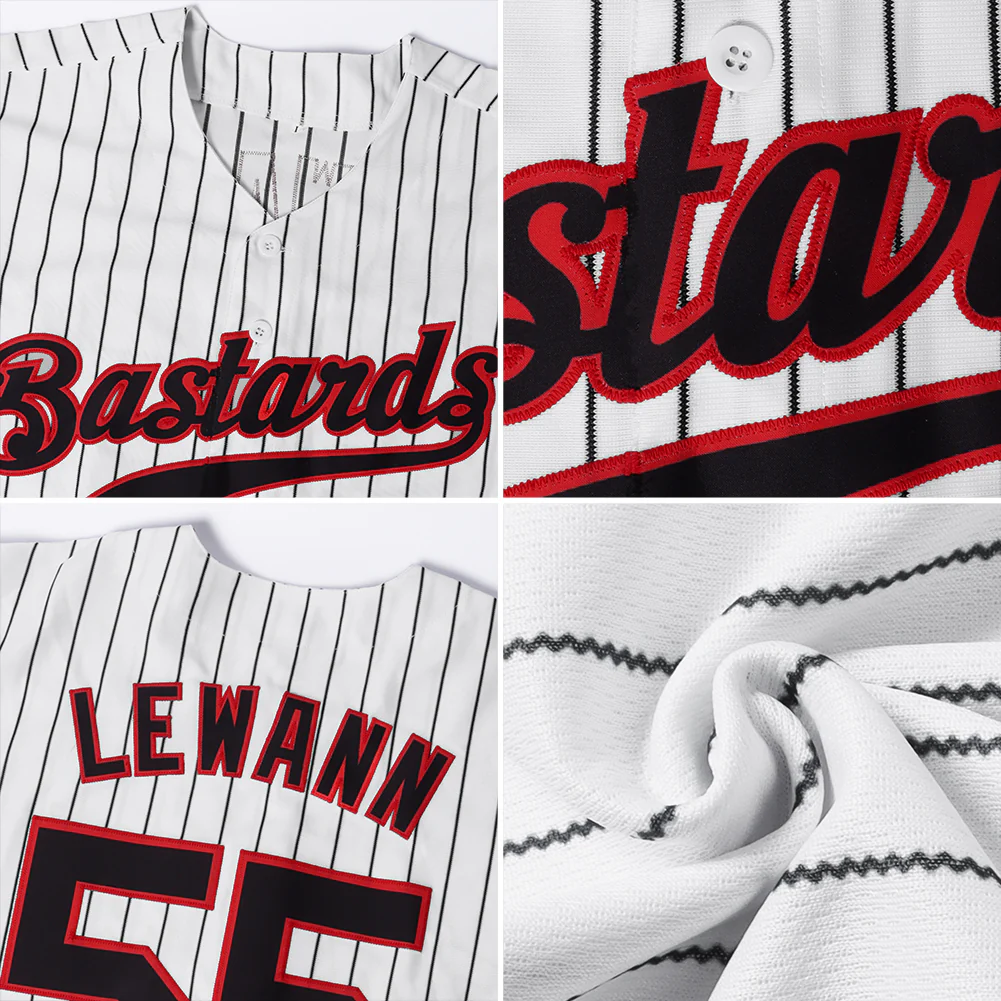 Custom White Black Pinstripe Black-Red Authentic Baseball Jersey