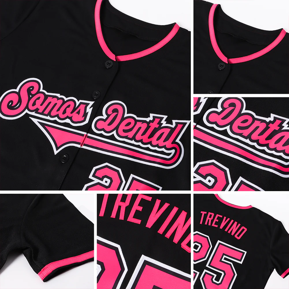 Custom Black Pink-White Authentic Baseball Jersey