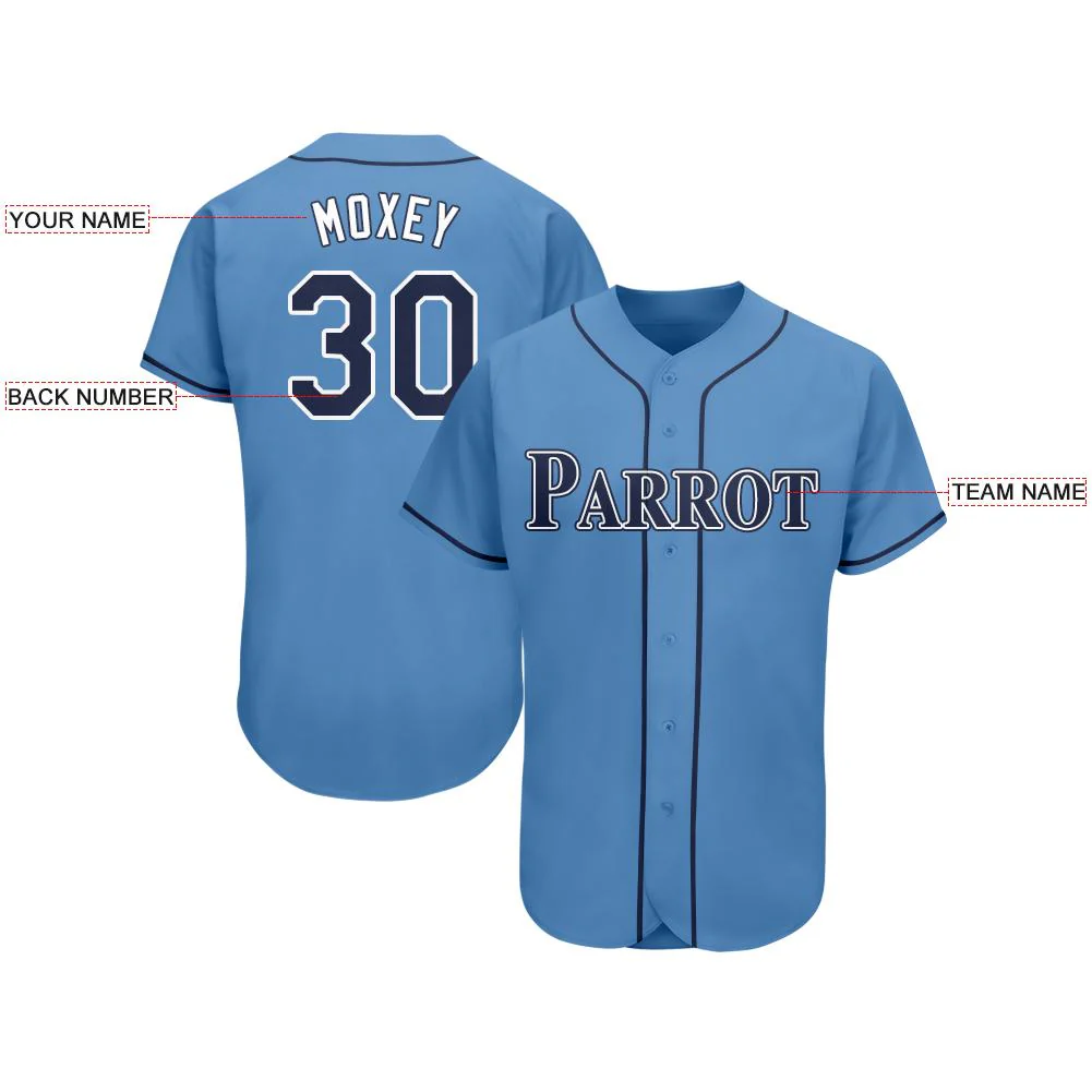 Custom Powder Blue Navy-White Baseball Jersey