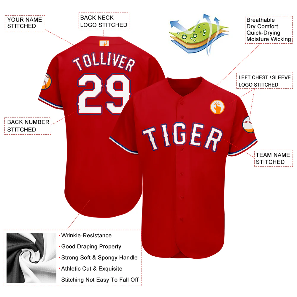 Custom Red White-Royal Baseball Jersey