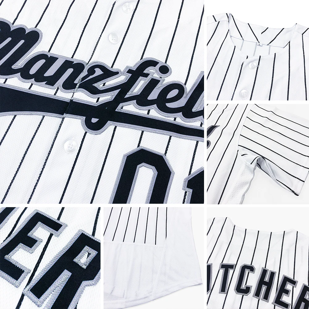Custom Navy White Pinstripe Light Blue Authentic Baseball Jersey