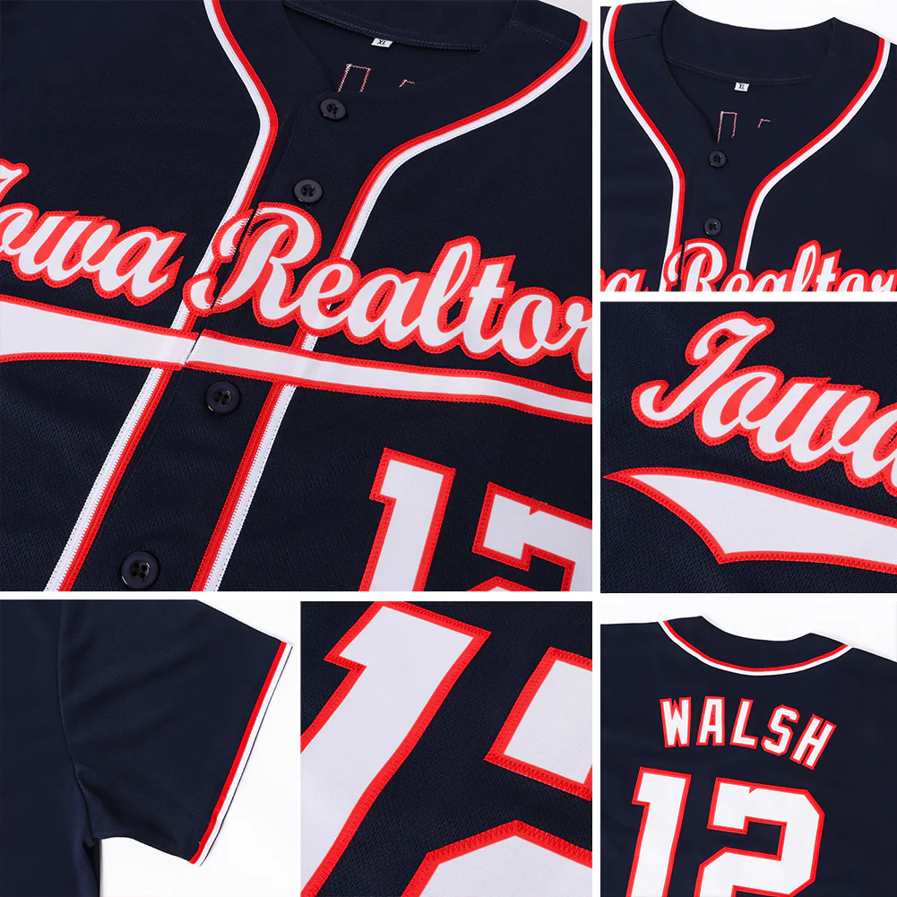 Custom Navy White-Red Baseball Jersey