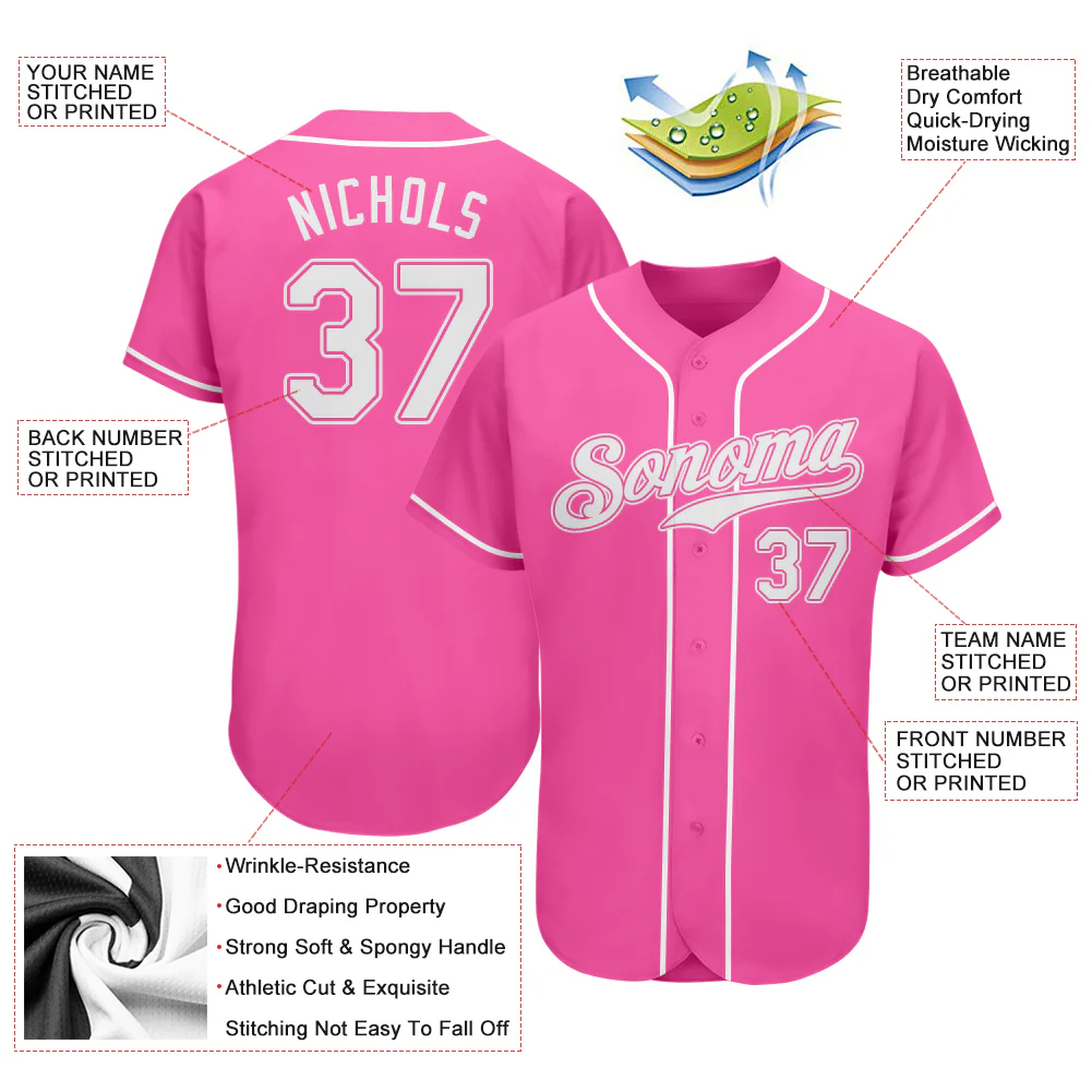 Custom Pink White Authentic Baseball Jersey
