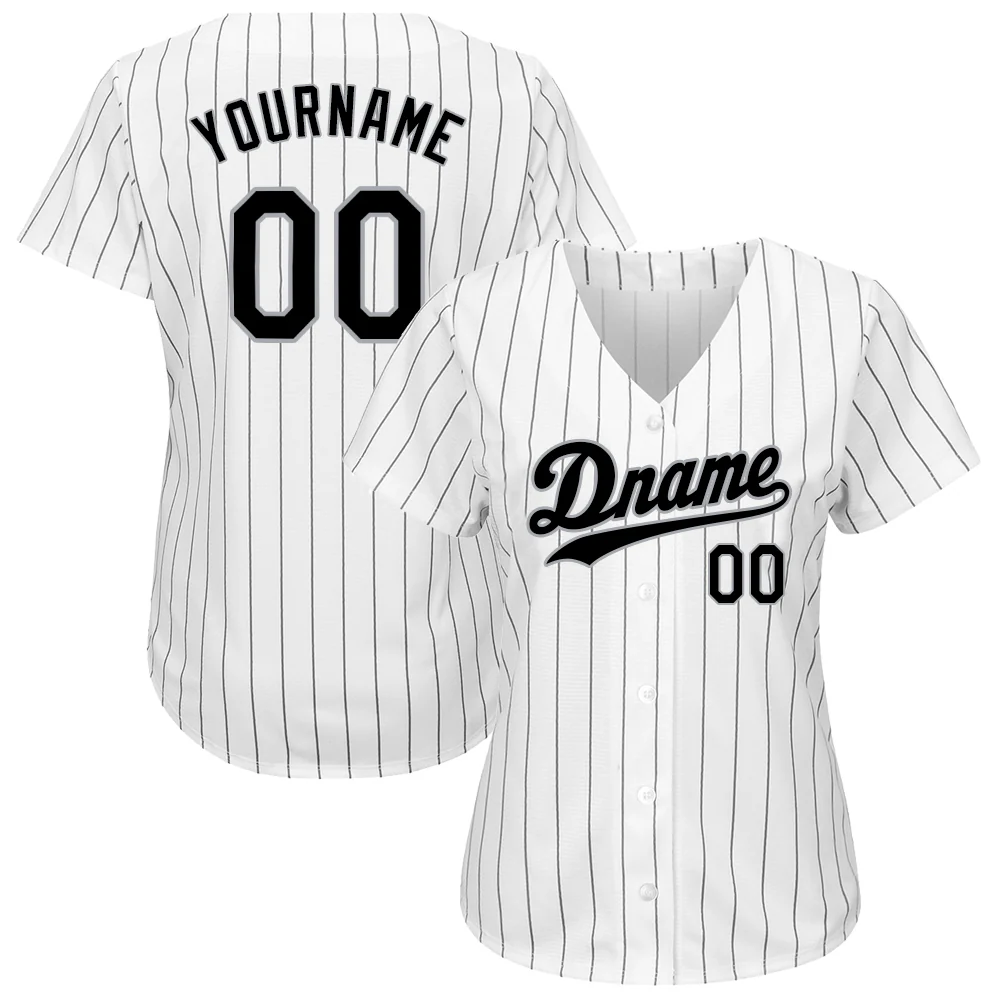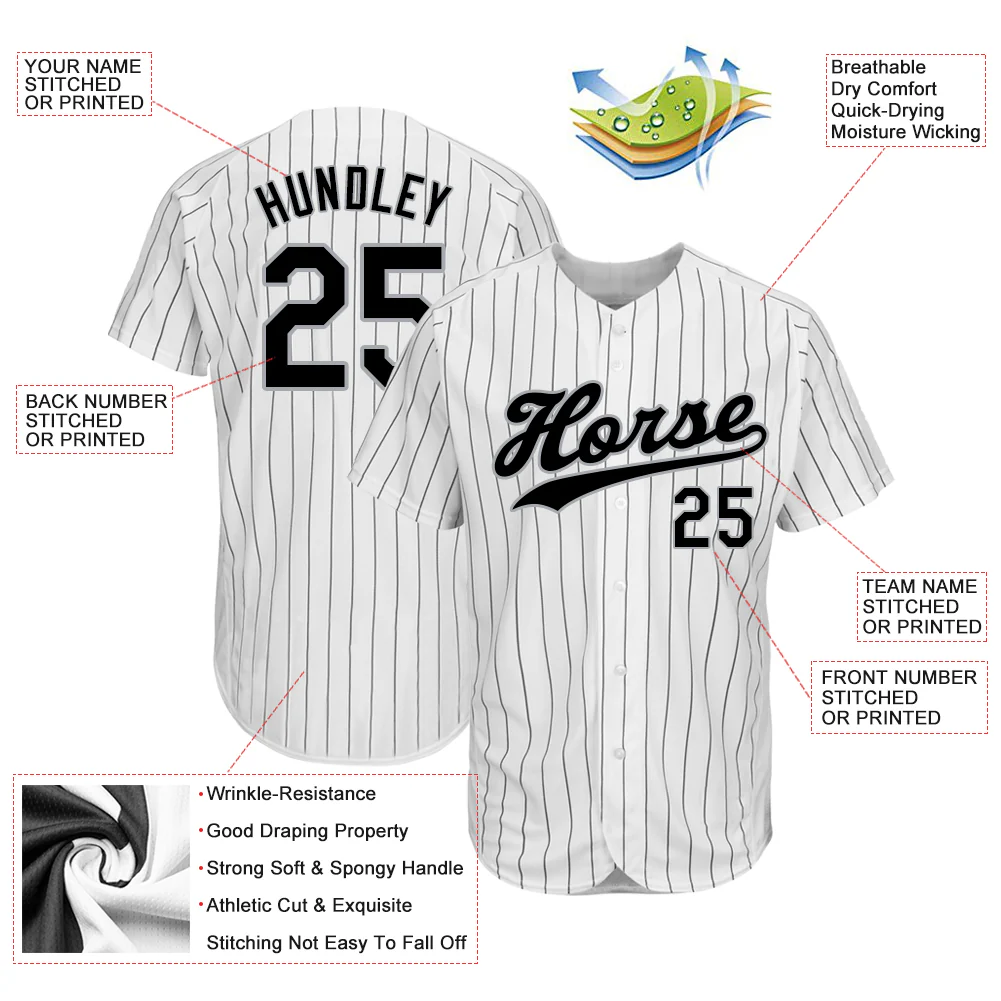 Custom White Black Pinstripe Black-Gray Authentic Baseball Jersey