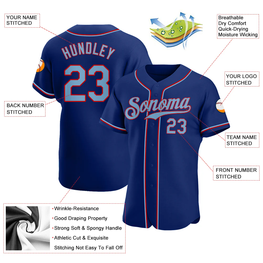 Custom Royal Light Blue-Red Authentic Baseball Jersey