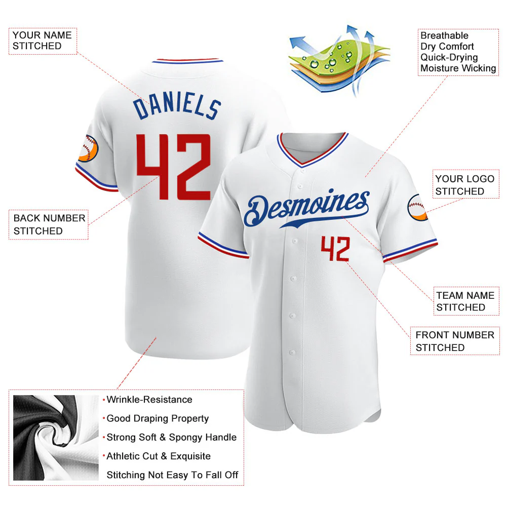 Custom White Red-Royal Authentic Baseball Jersey