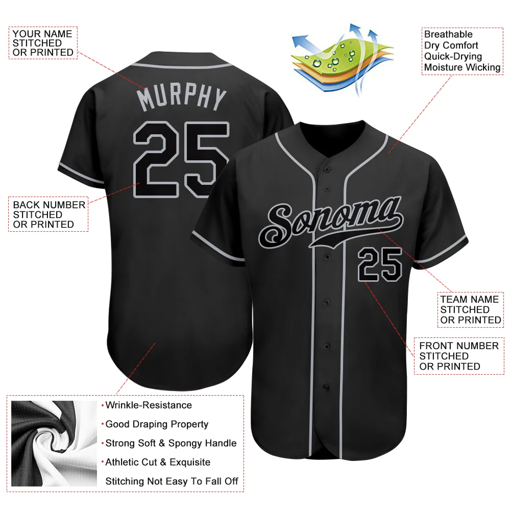 Custom Black Black-Gray Authentic Baseball Jersey