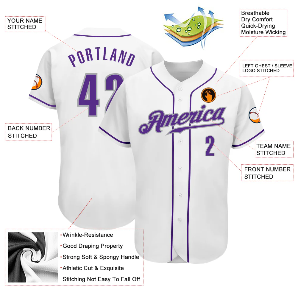 Custom Purple Yellow-White Authentic Gradient Fashion Baseball Jersey