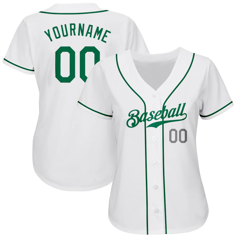 Custom White Kelly Green-Light Gray Authentic Baseball Jersey