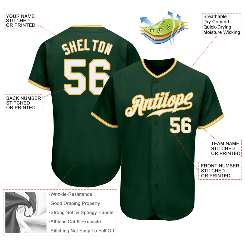 Custom Green White-Gold Authentic Baseball Jersey