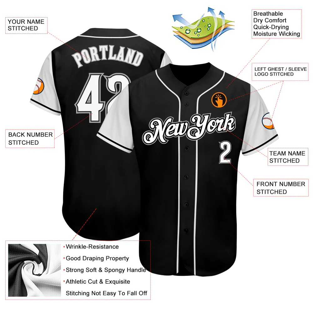 Custom Black White-Gray Authentic Two Tone Baseball Jersey