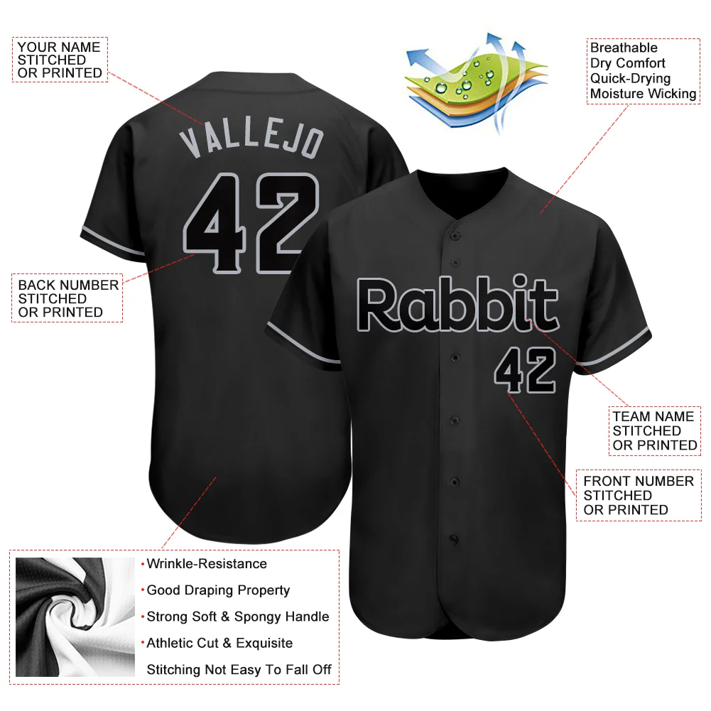 Custom Black Black-Gray Authentic Baseball Jersey