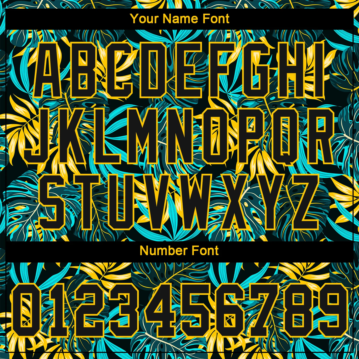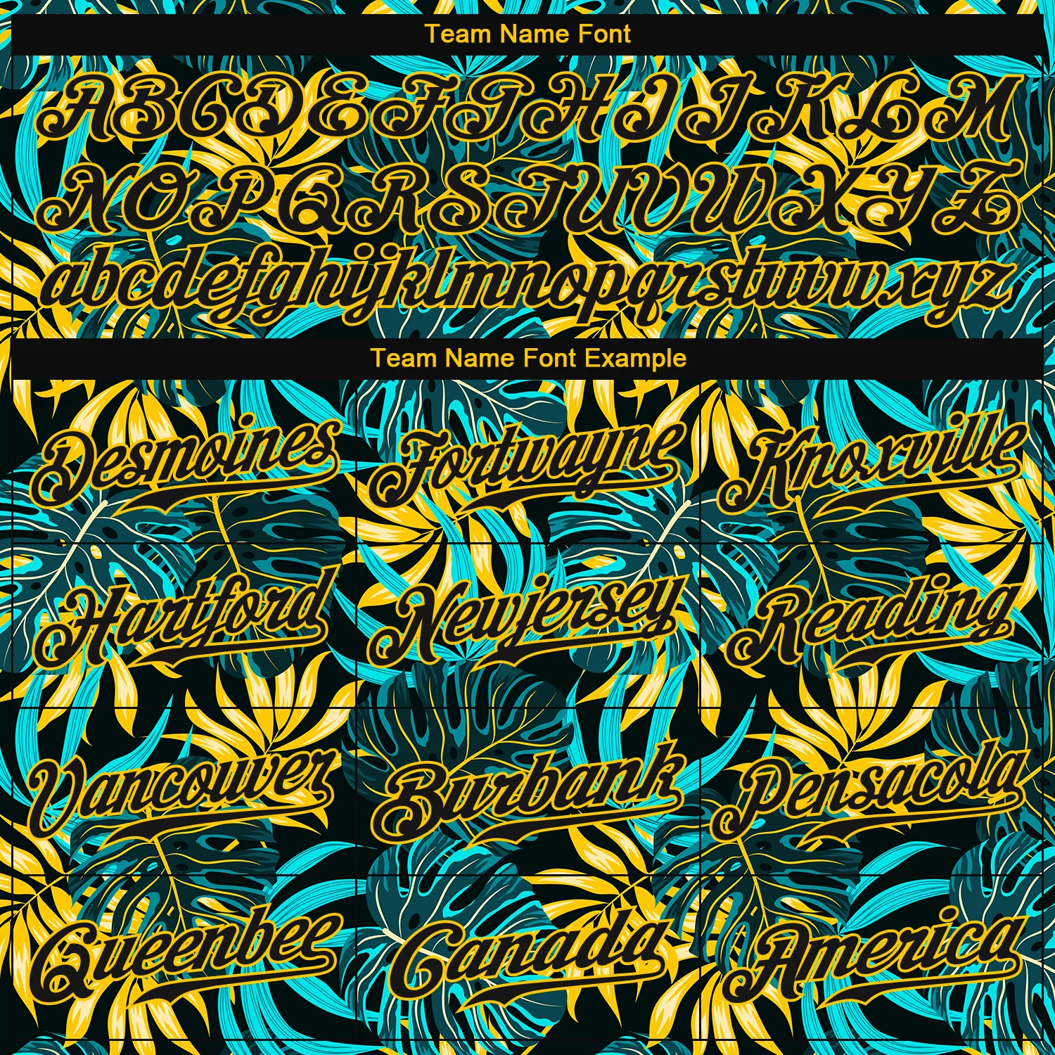 Custom Black Black-Gold 3D Pattern Design Tropical Palm Leaves Authentic Baseball Jersey