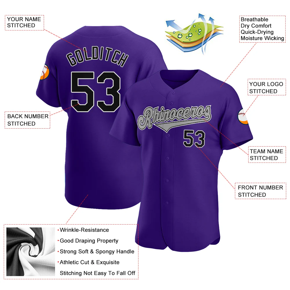 Custom Purple Black-Gray Authentic Baseball Jersey