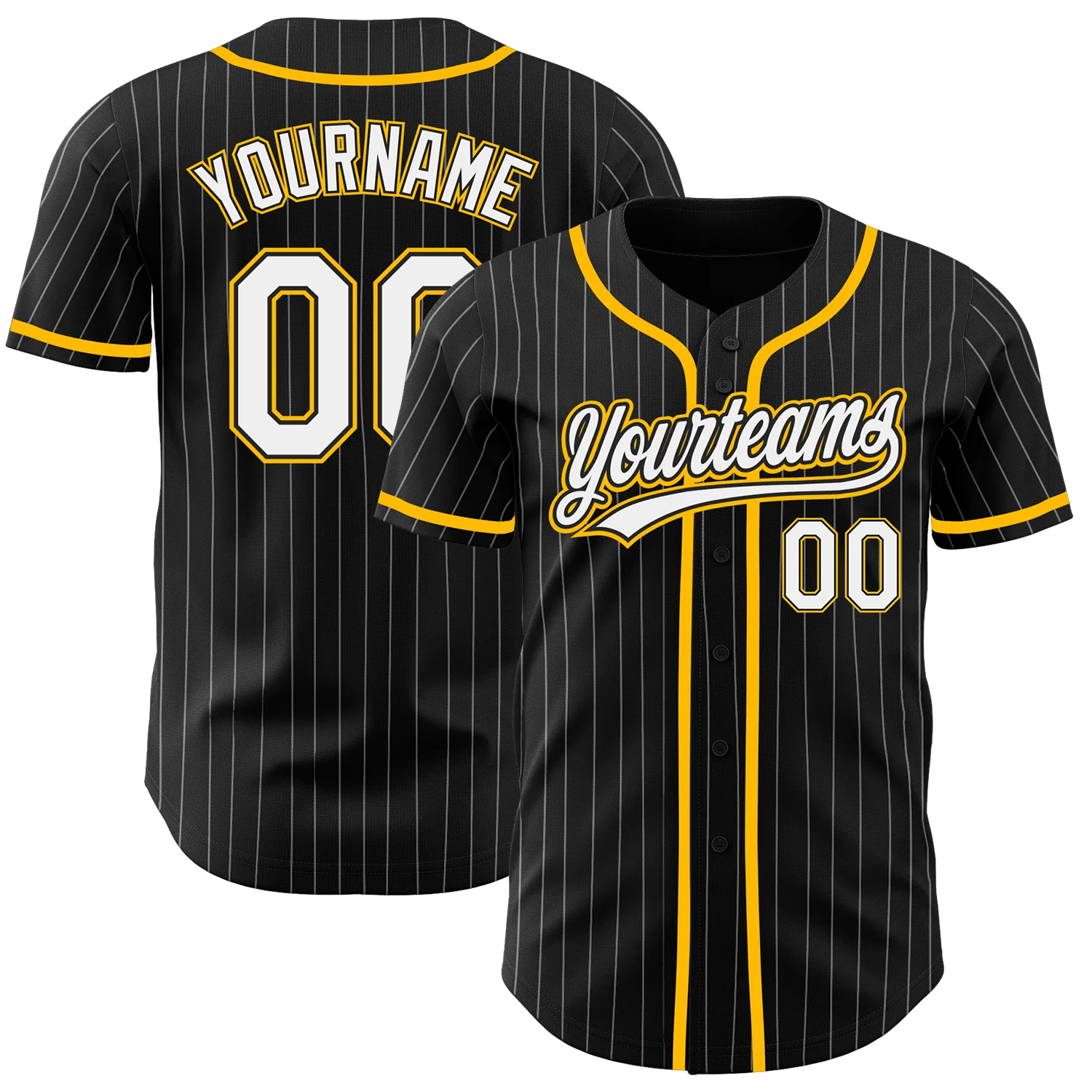 Custom Black White Pinstripe White-Gold Authentic Baseball Jersey