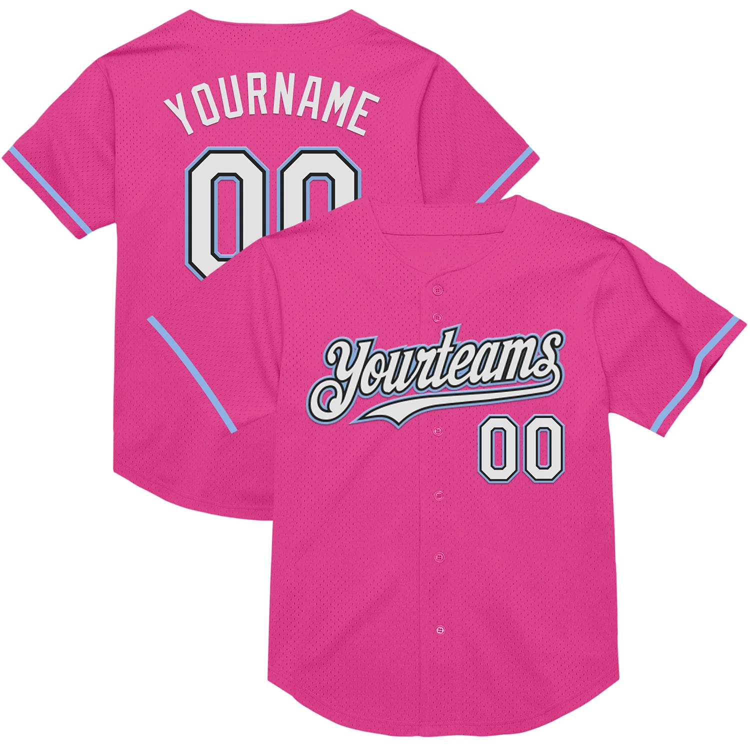 Custom Pink Black-Light Blue Mesh Authentic Throwback Baseball Jersey