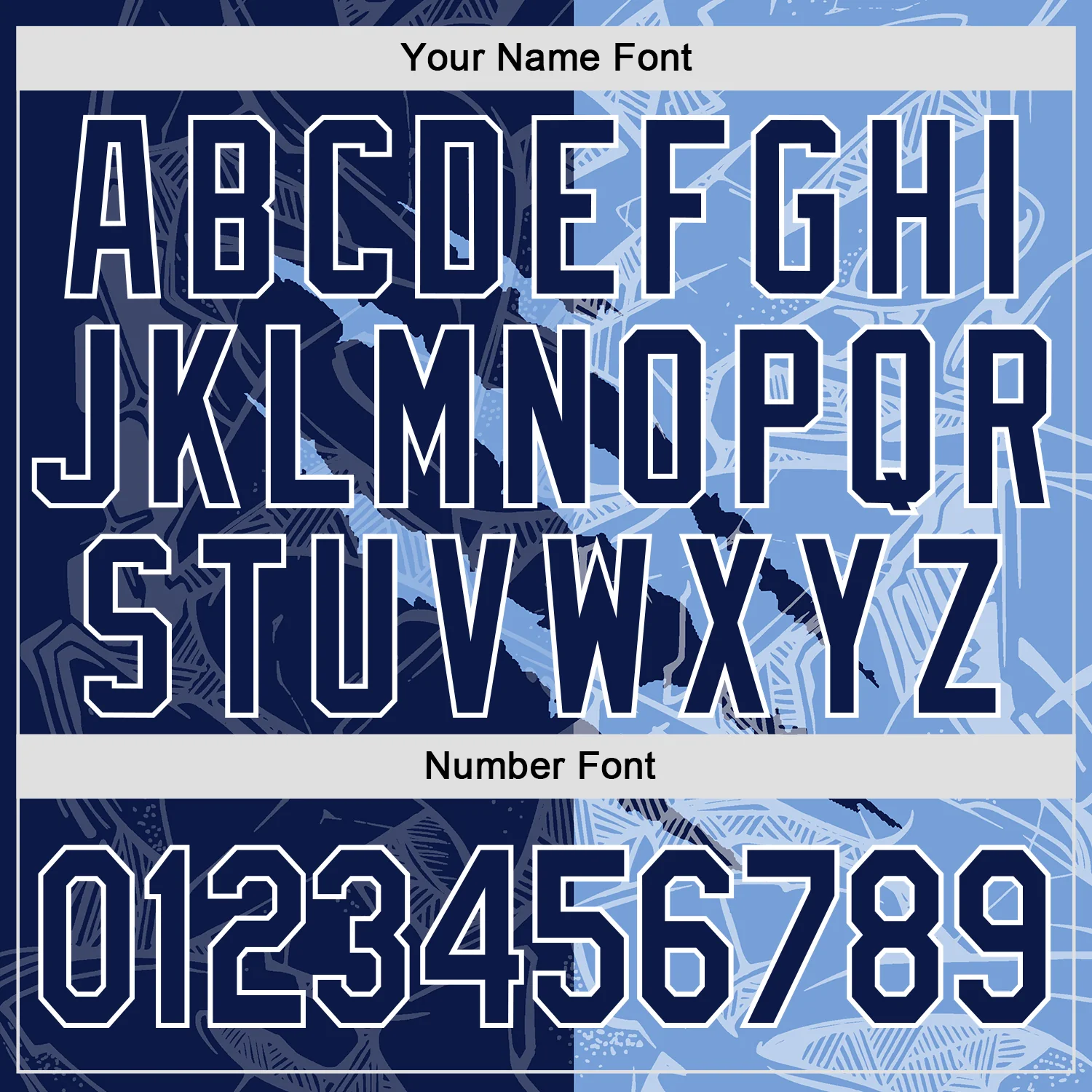 Custom Graffiti Pattern Navy-Light Blue 3D Scratch Authentic Baseball Jersey