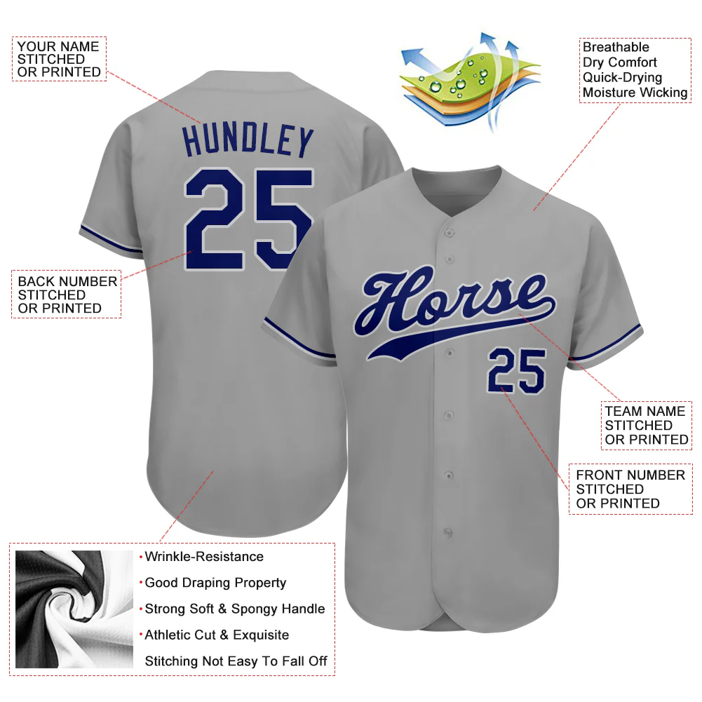Custom Gray Royal-White Authentic Baseball Jersey