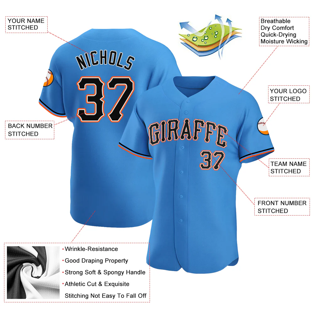 Custom Powder Blue Black-Orange Authentic Baseball Jersey