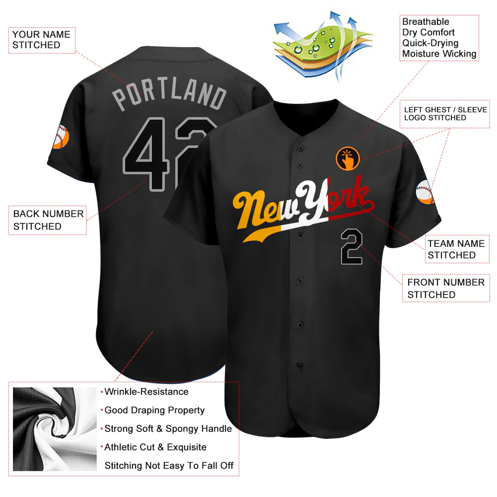 Custom Black Black-Gold Authentic Split Fashion Baseball Jersey