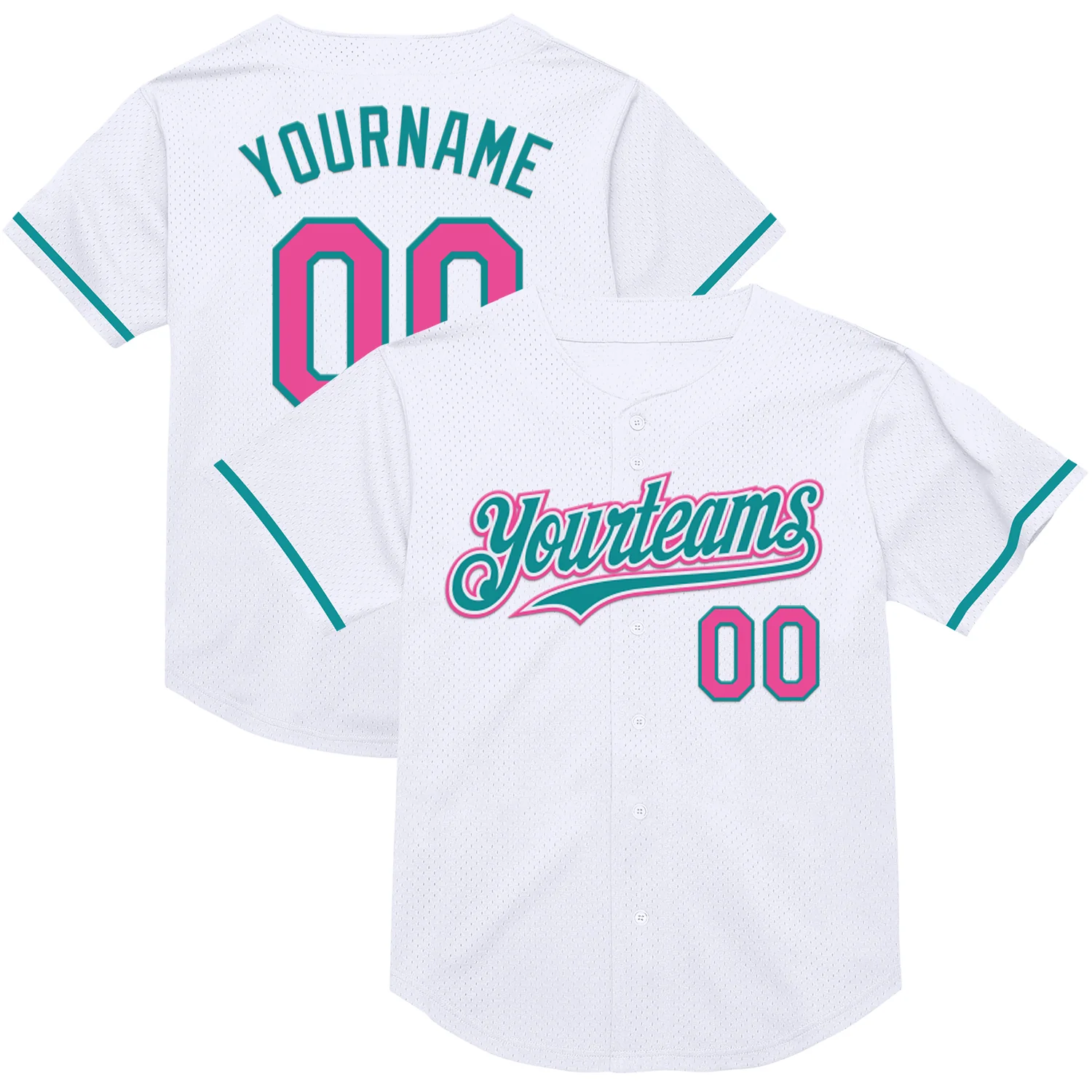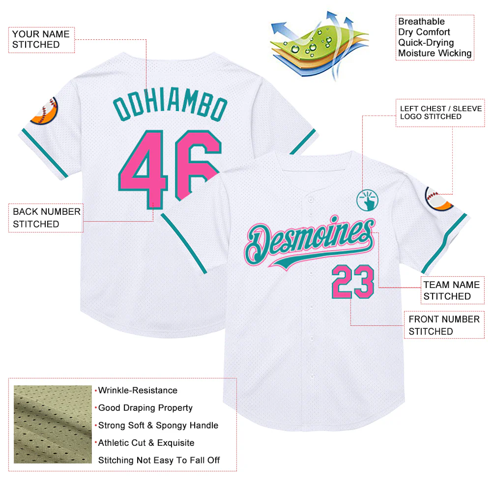 Custom White Pink-Teal Mesh Authentic Throwback Baseball Jersey