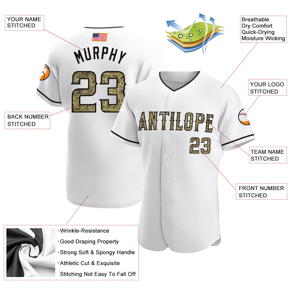 Custom White Camo-Black Authentic American Flag Fashion Baseball Jersey