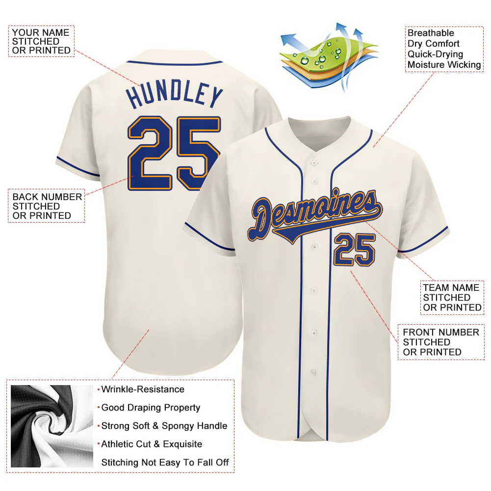 Custom Cream Royal-Gold Authentic Baseball Jersey