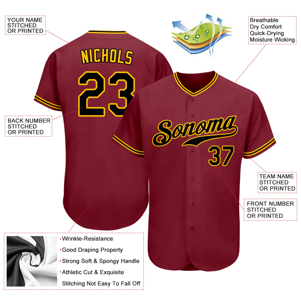 Custom Crimson Black-Gold Authentic Baseball Jersey