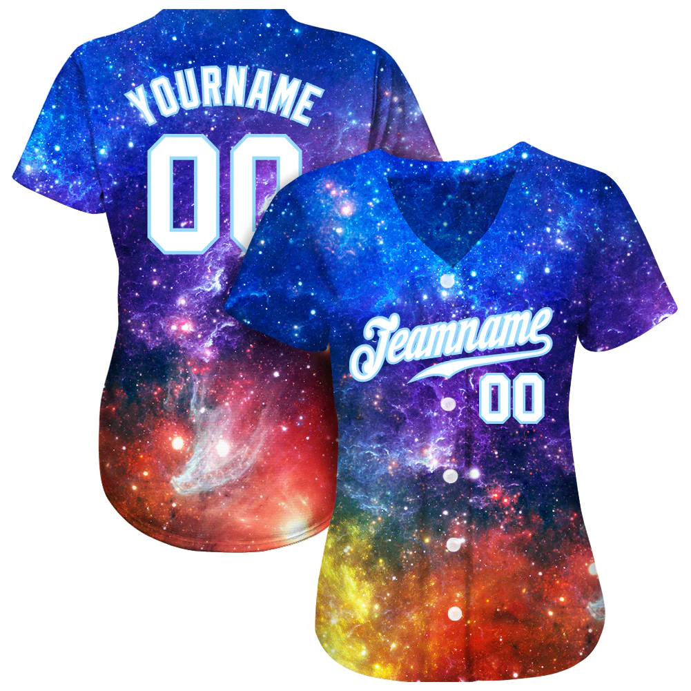 Custom Galactic White-Light Blue 3D Authentic Baseball Jersey