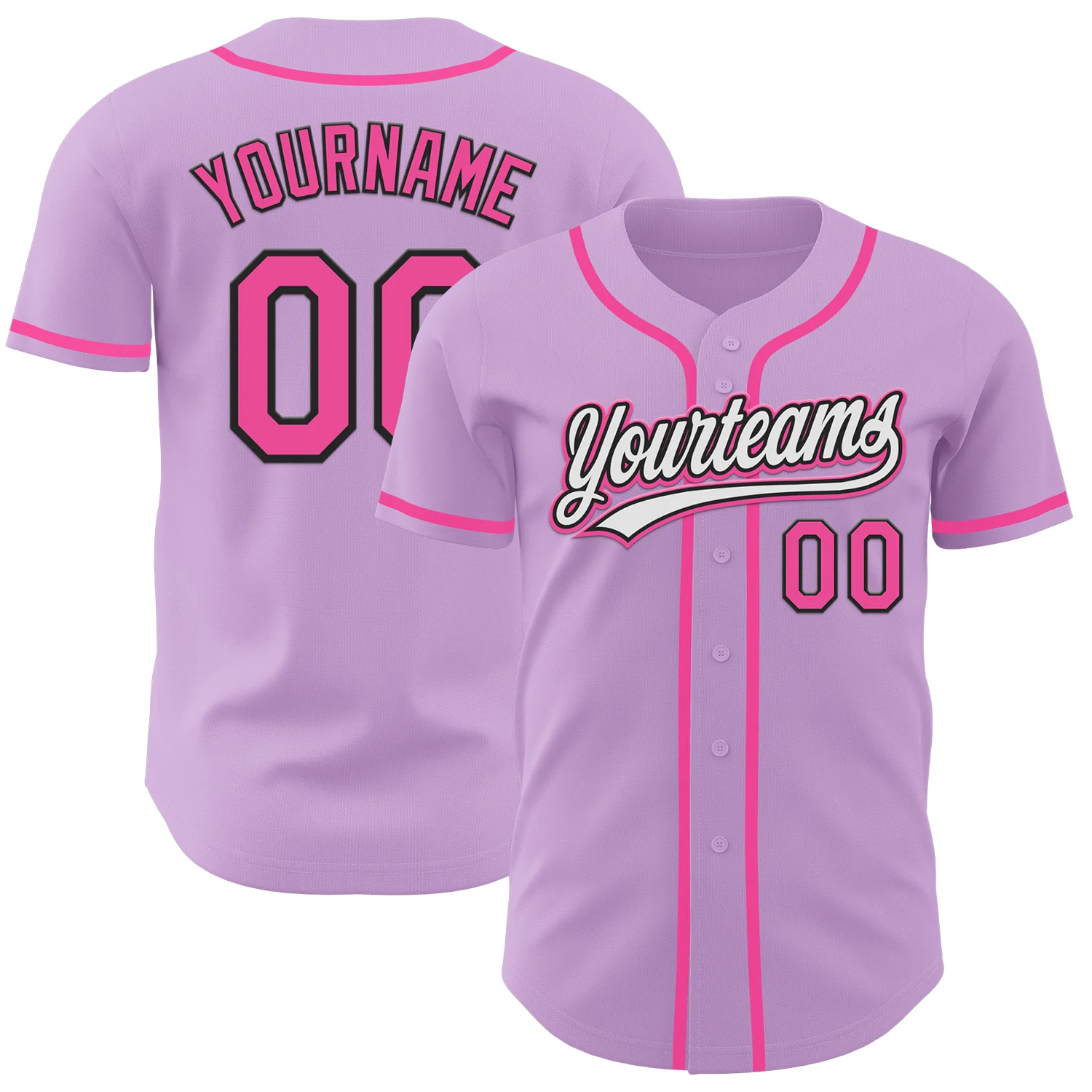 Custom Light Purple Pink-Black Authentic Baseball Jersey