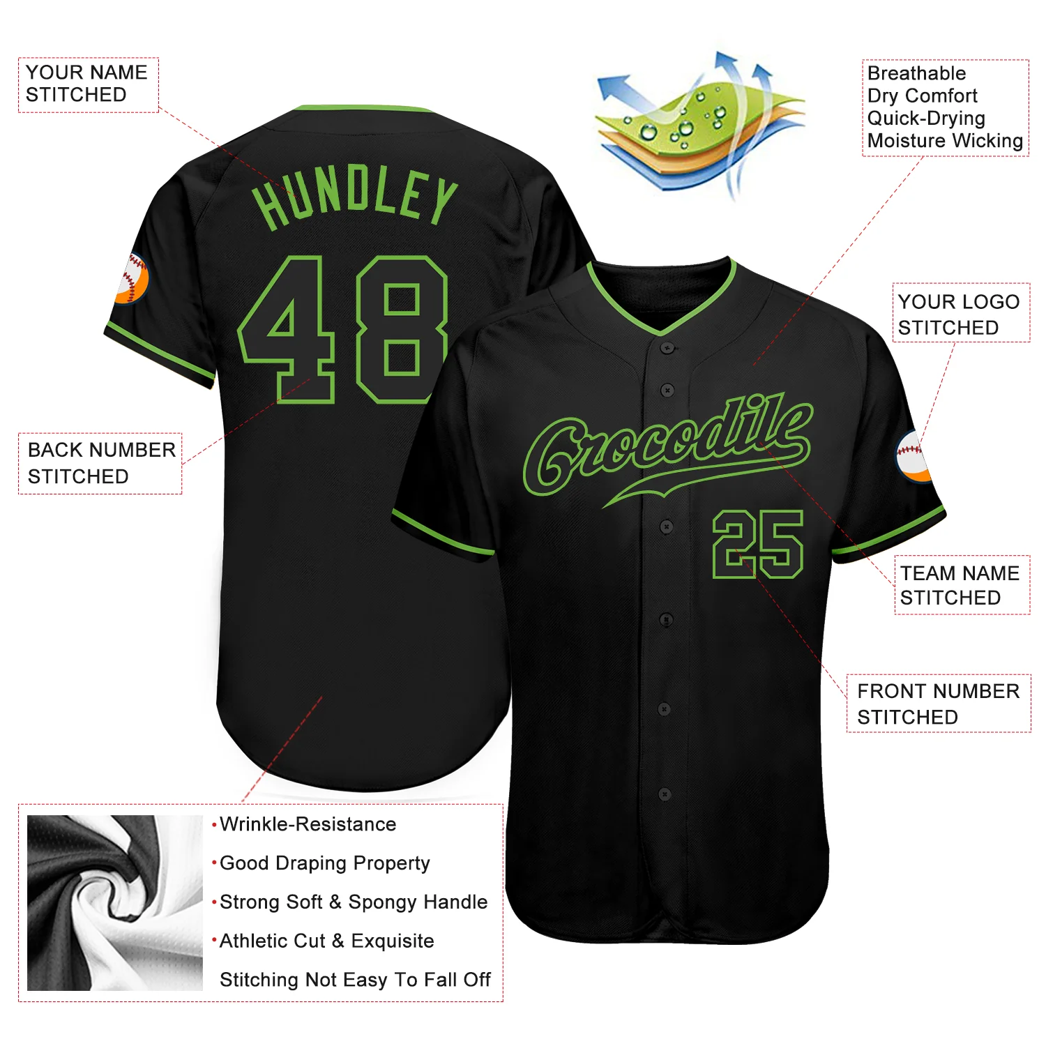 Custom Black Black-Neon Green Authentic Baseball Jersey