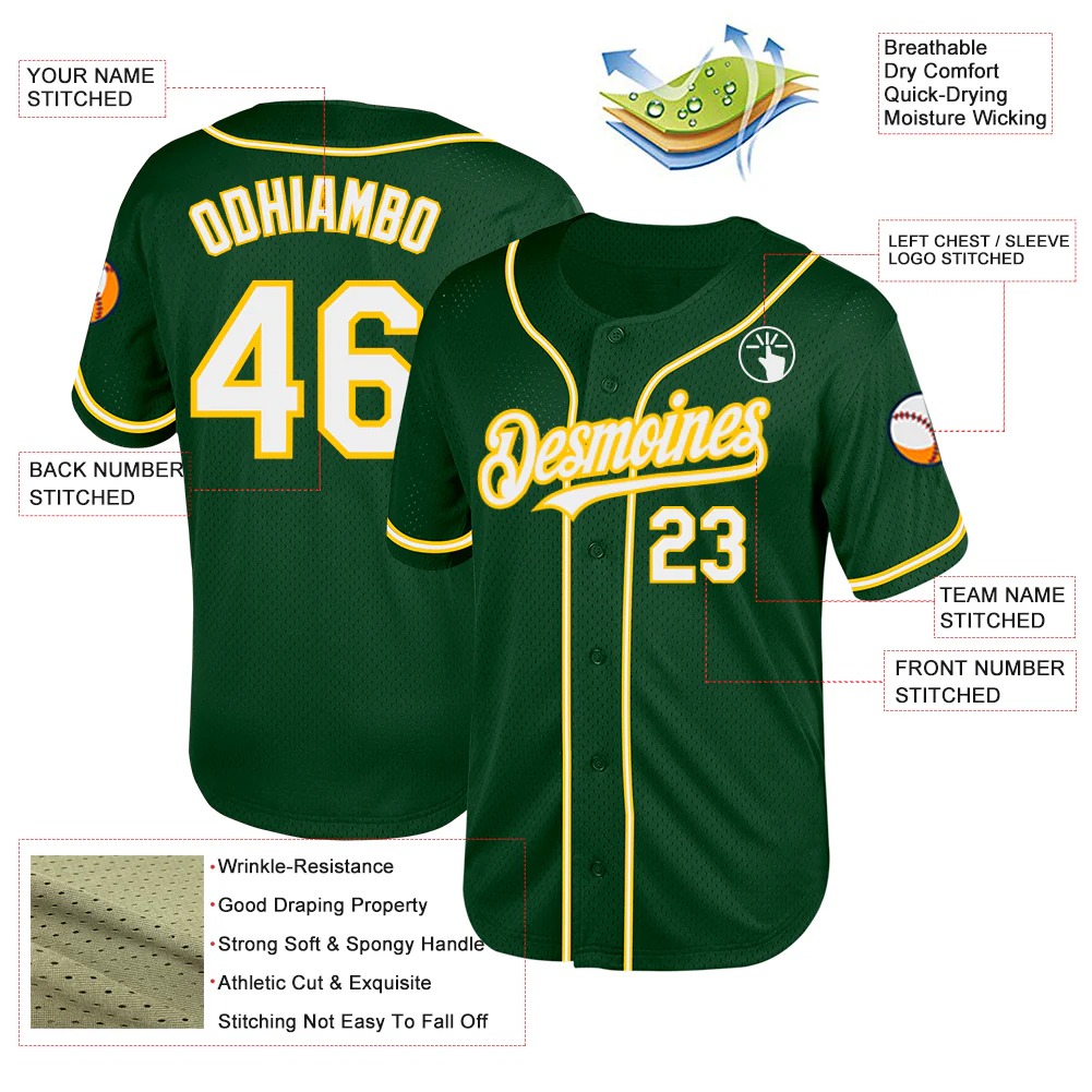 Custom Green White-Yellow Mesh Authentic Throwback Baseball Jersey