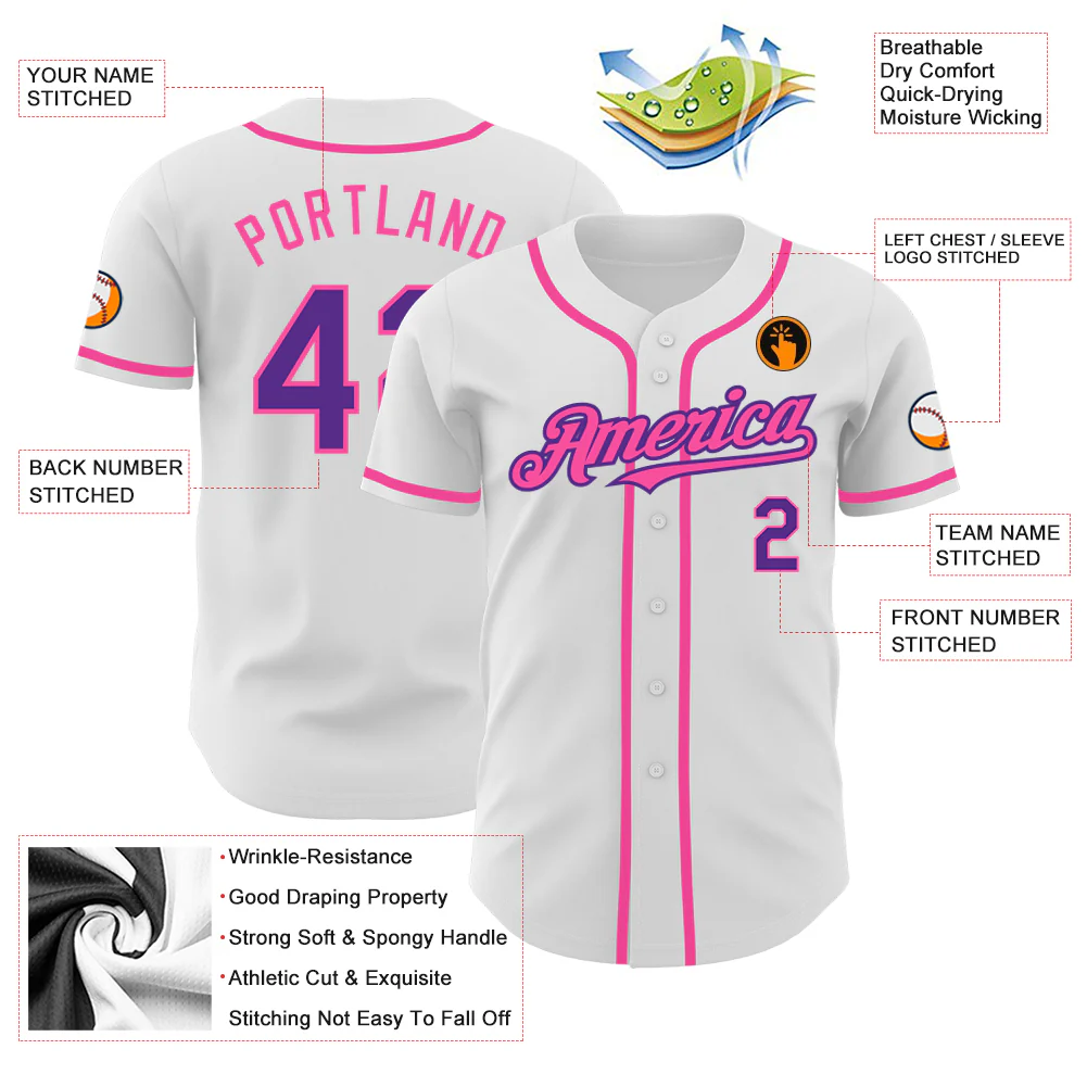 Custom White Purple-Pink Authentic Baseball Jersey