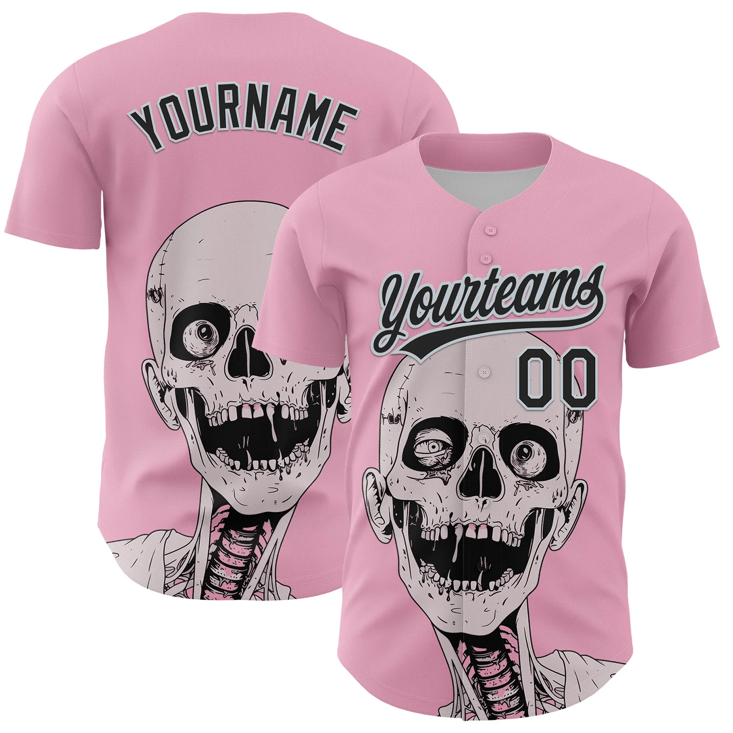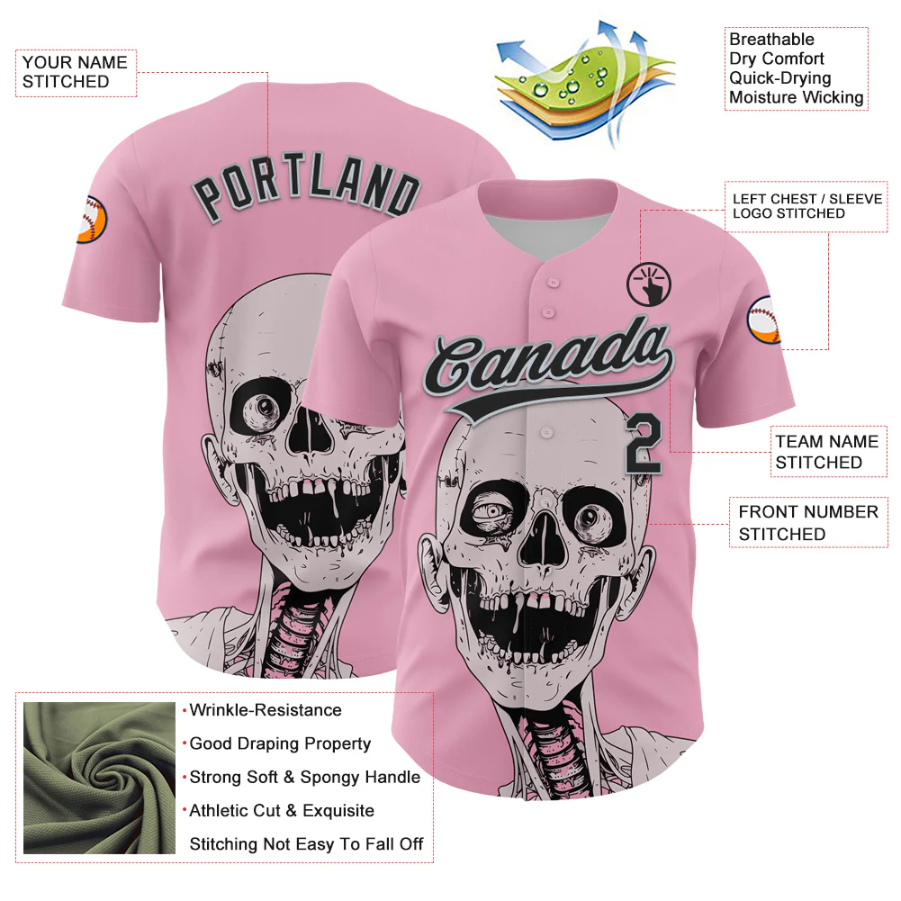 Custom Light Pink Black-Silver 3D Halloween Authentic Baseball Jersey