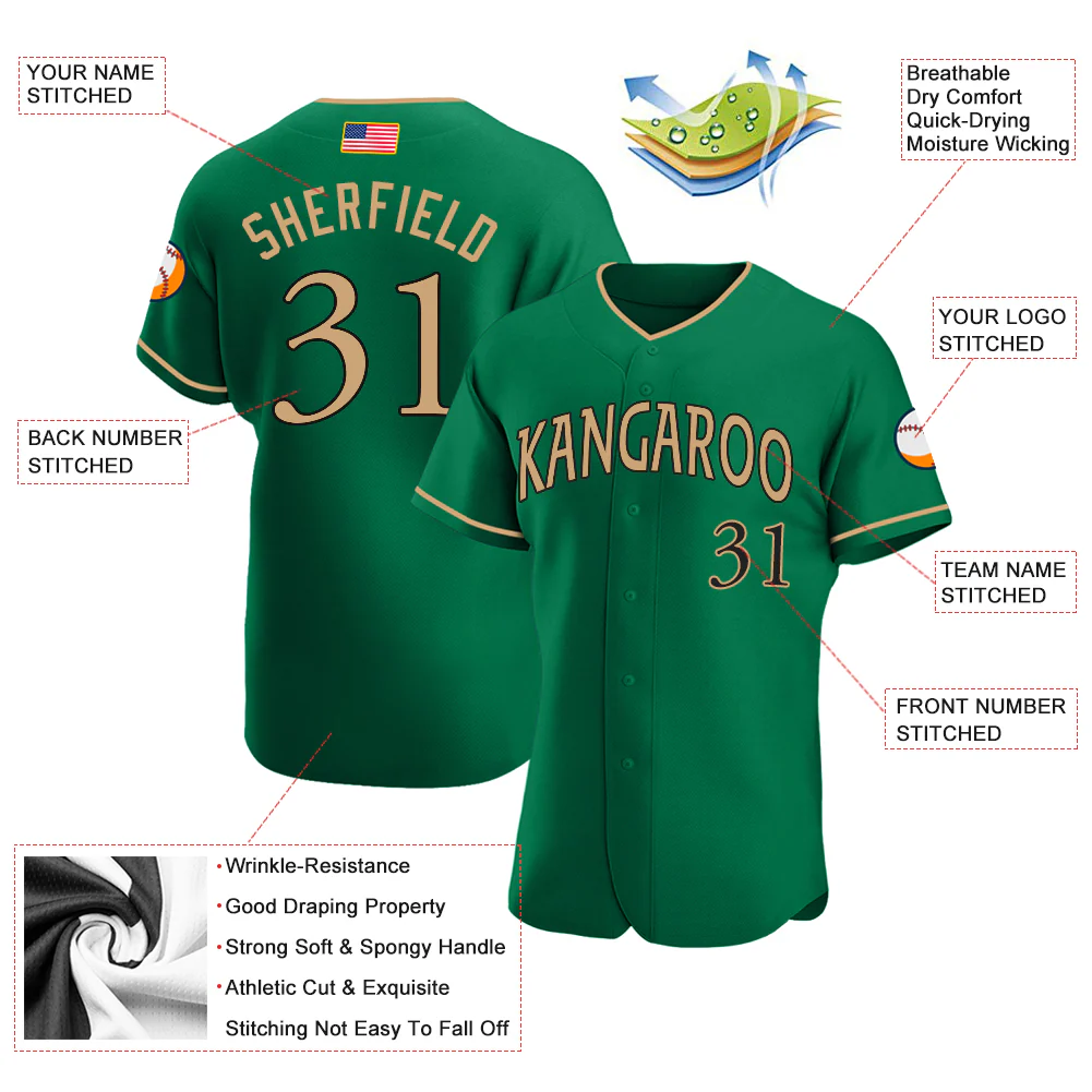 Custom Kelly Green Old Gold-Black Authentic American Flag Fashion Baseball Jersey