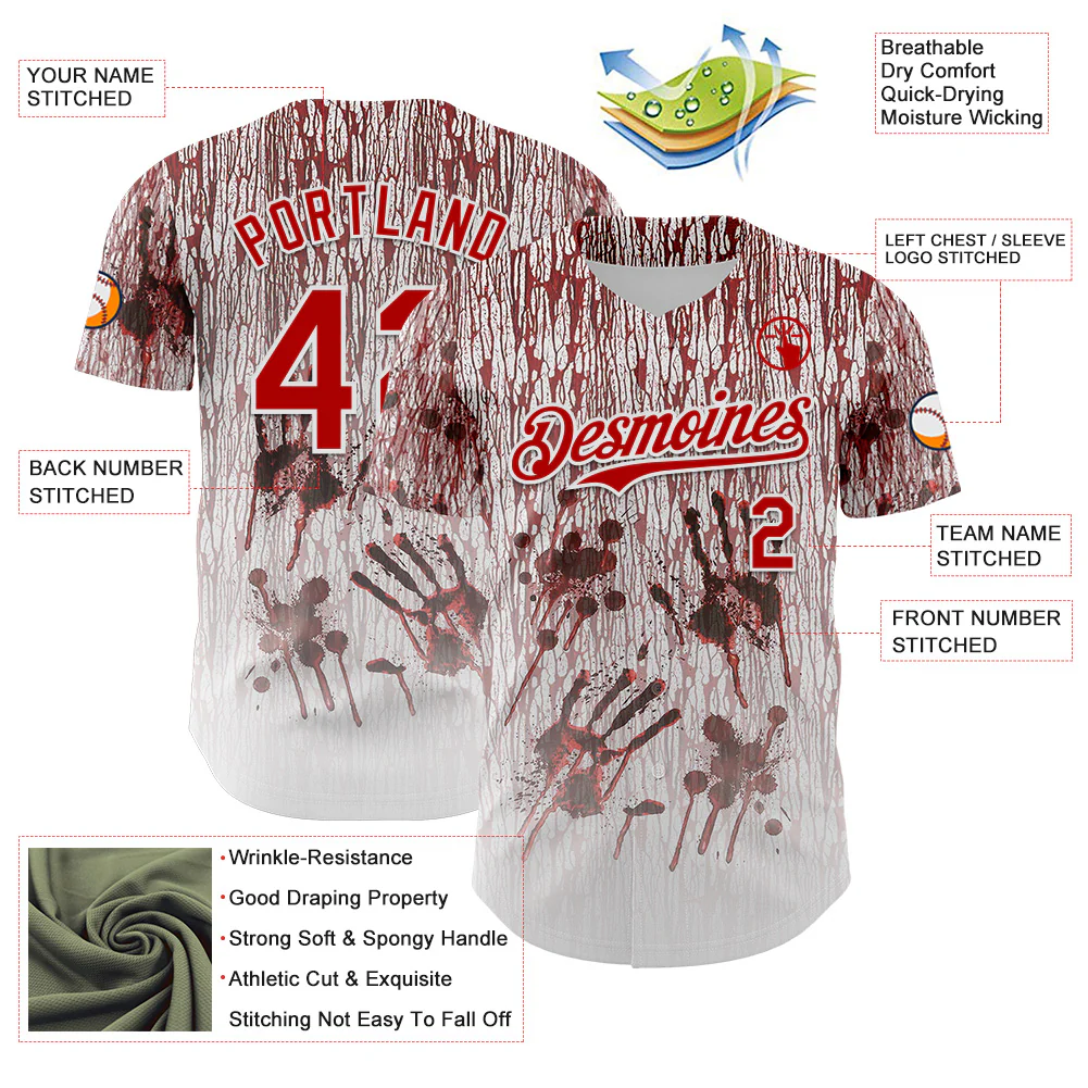 Custom White Red-Black 3D Halloween Creepy Blood Horror Authentic Baseball Jersey