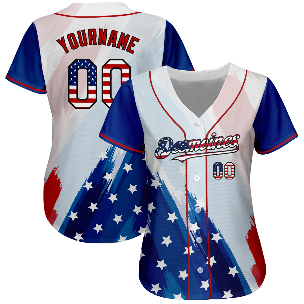 Custom White USA Flag Royal Red-Black 3D American Flag Fashion Authentic Baseball Jersey