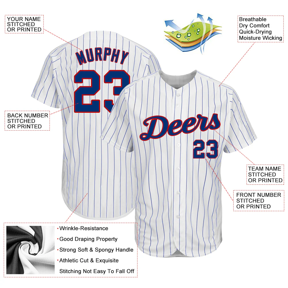 Custom White Royal Pinstripe Royal-Red Authentic Baseball Jersey